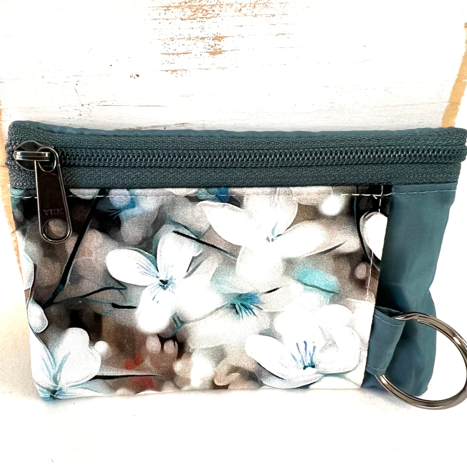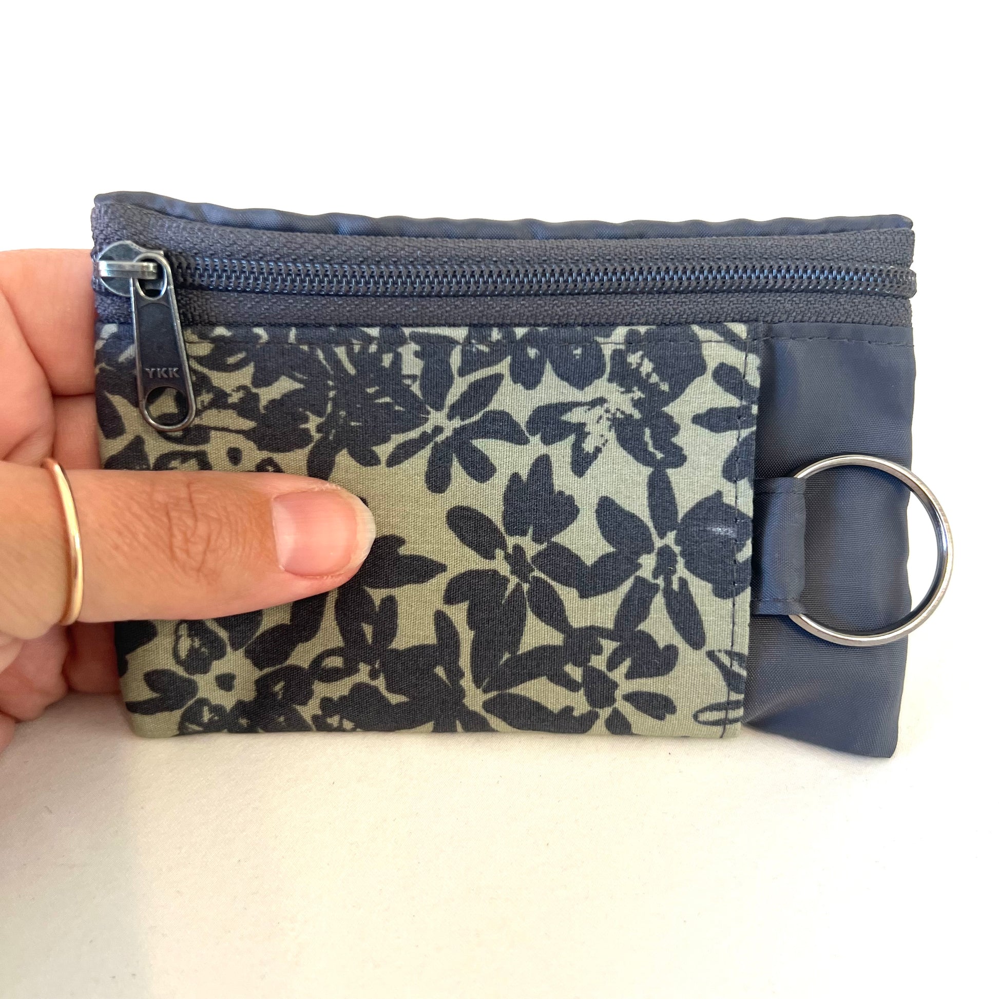 Our Minimalist Wallet is made from lightweight nylon fabric and has 2 zippered compartments on opposite sides. It has a divider for your ID and a keychain to attach your keys or keyfob and tuck it into the pocket.