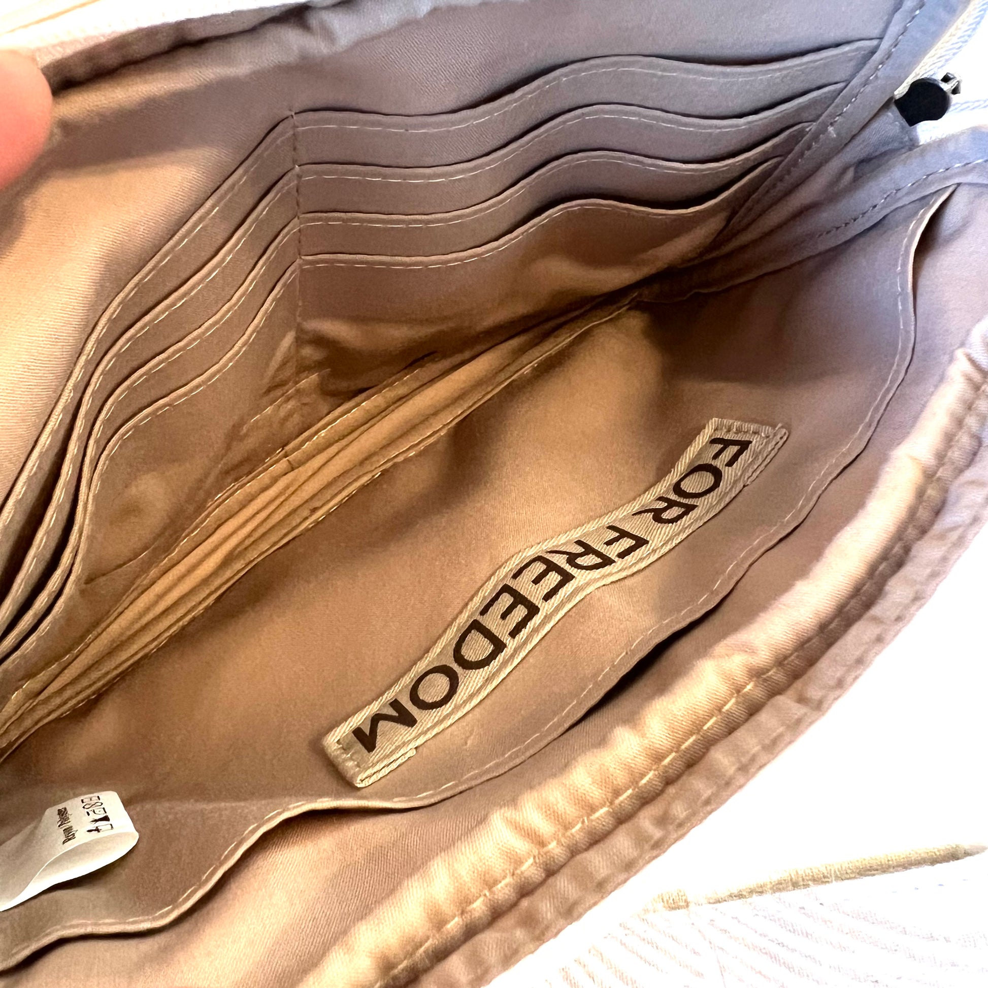 This wristlet pouch style wallet has a pillow-like padding and stitching detail. On the front of the wallet is an ID window long with a zippered pocket. The back of the wallet has an additional zippered compartment. The wallet has a zippered closure and inside you'll find 8 card slots and an open pocket. The wristlet is 7 inches and is detachable.
