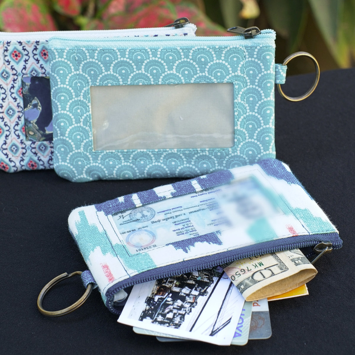 This much loved mini wallet features an exterior plastic window with divider for your driver’s license or ID. On the reverse side another snap closure pocket. A key ring attached for your keys or a keychain.