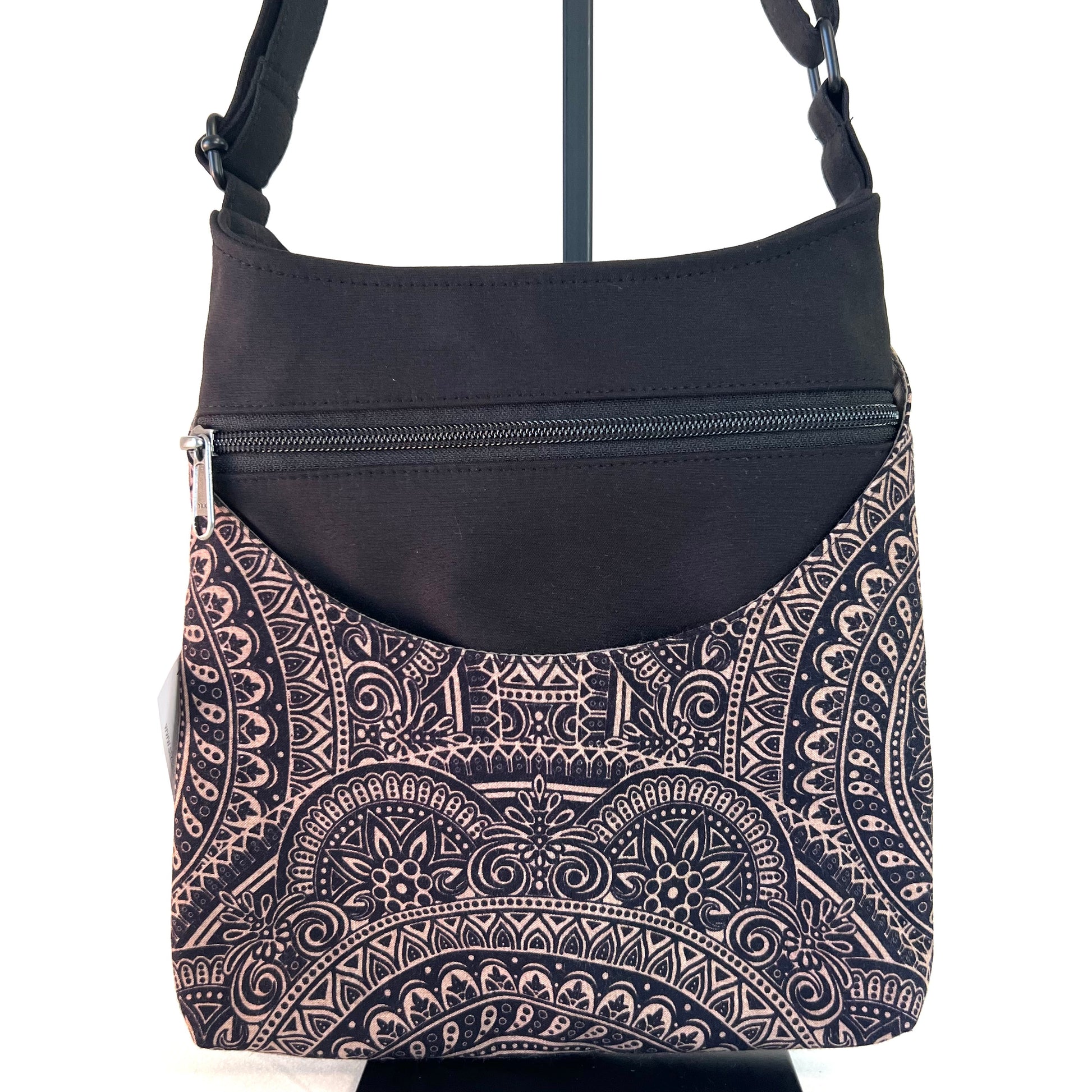 Our Toun bag has gone through a redesign. It has a wider base and a curved top to allow for easier access to your items along with an addition of a back zippered pocket. Toun is a medium sized, zip-top cross body/shoulder bag that has a signature curved front pocket along with front and back zippered pockets. Inside you'll find our standard interior with 2 open pockets and 1 zippered pocket.