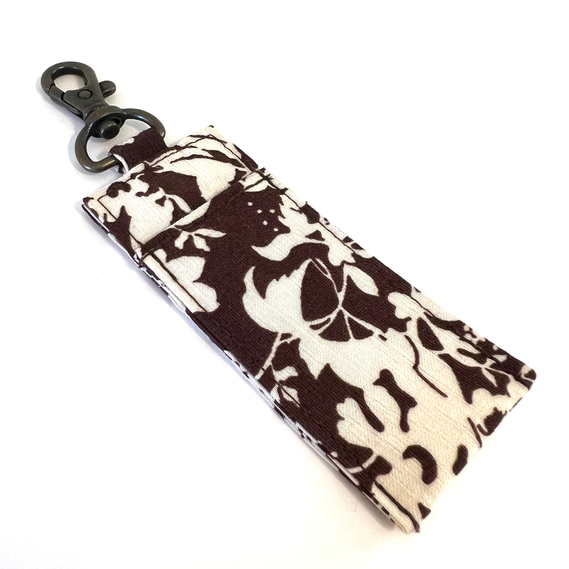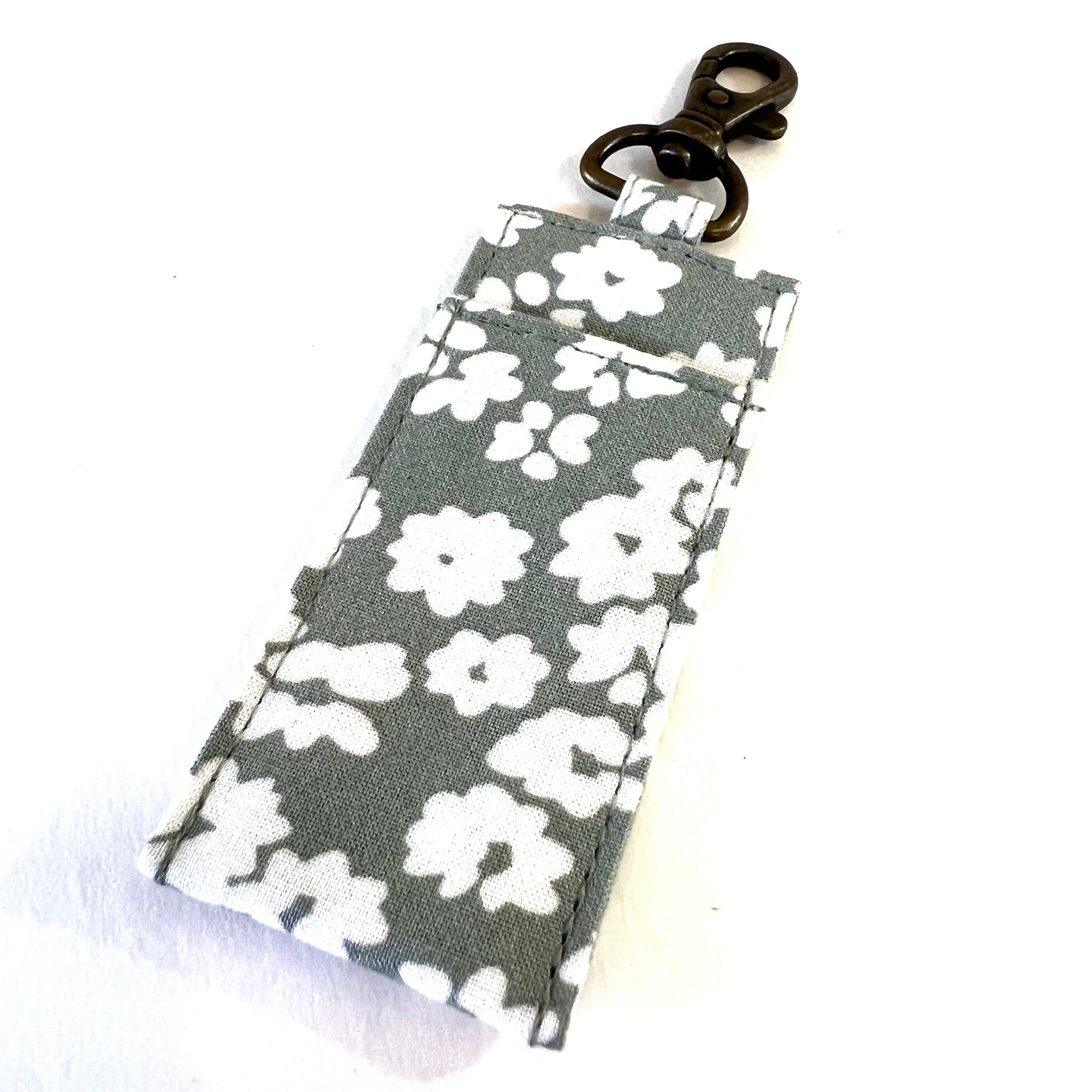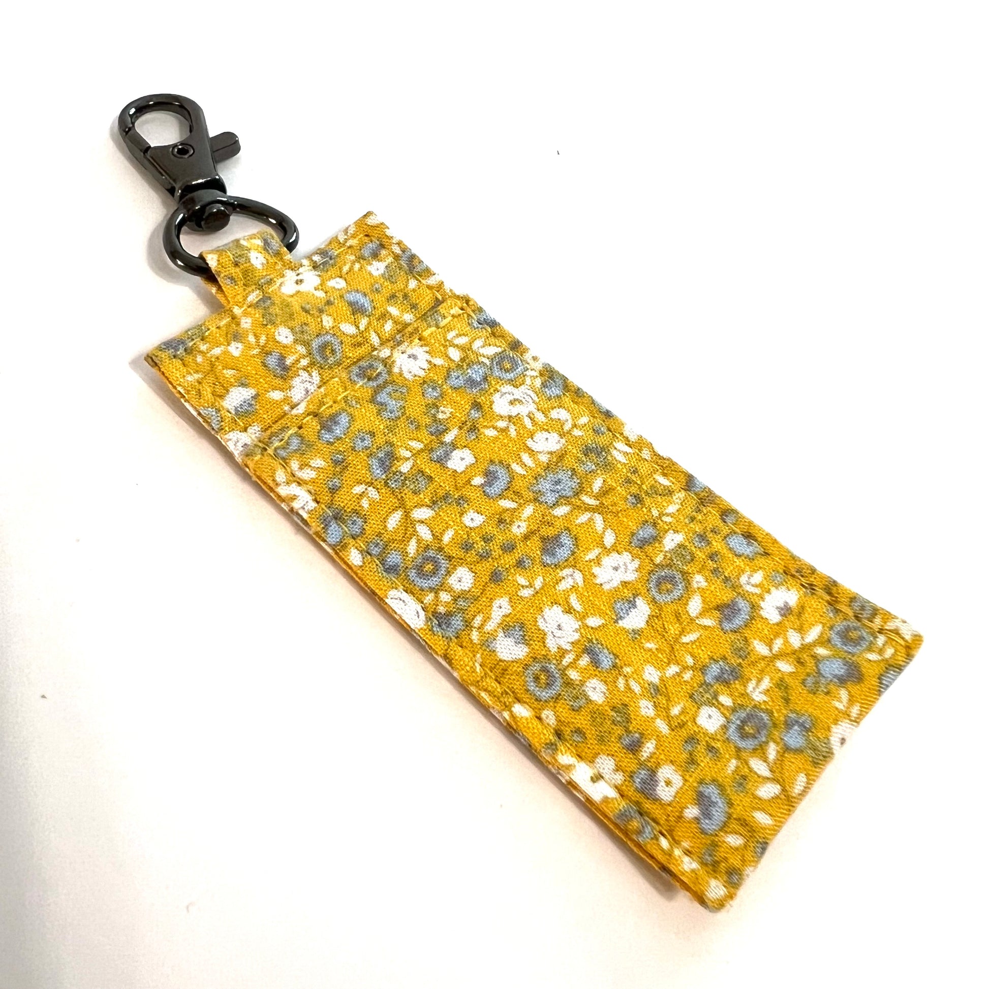 Carry your chapstick, essential oil rollerball, lipgloss, or mini sharpie snugly on your keychain or clipped to your bag or backpack! Fits most standard sized chapstick. Made with assorted cotton.